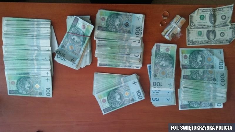 W minioną niedzielę na terenie gminy Bieliny doszło do rozboju. Dwie kobiety weszły do domu 83-latki oferując kupno koca. Kiedy seniorka nie wykazała zainteresowania ofertą, nieproszeni goście zarzucili jej koc na głowę i obezwładniły przytrzymując. W tym czasie inne osoby weszły do domu i rozpoczęły poszukiwania kosztowności. Po wszystkim, pięcioro sprawców tego czynu w pośpiechu oddaliło się. Na szczęście czujny sąsiad 83-latki zauważył wybiegających napastników, którzy odjechali czerwonym fordem w kierunku Kielc. Mężczyzna zawiadomił policję. Na miejsce natychmiast skierowany został patrol z daleszyckiego komisariatu. W trakcie dojazdu stróże prawa zauważyli opisywany czerwony samochód, którego kierowca na widok radiowozu przyspieszył. Manewry kierującego fordem nie uniknęły zatrzymania go do kontroli na terenie gminy Górno. Jak się okazało, w czerwonym wozie siedziało pięć osób. Dwóch mężczyzn w wieku 51 i 57 lat oraz 40, 61 i 70-latka. Policjanci podczas przeszukania samochodu natrafili na gotówkę w kwocie blisko 60 000 złotych, zabezpieczono także dolary i biżuterię. Wśród zabezpieczonej kwoty znajdowały się druki przekazów pocztowych z widniejącym nazwiskiem okradzionej 83-latki.