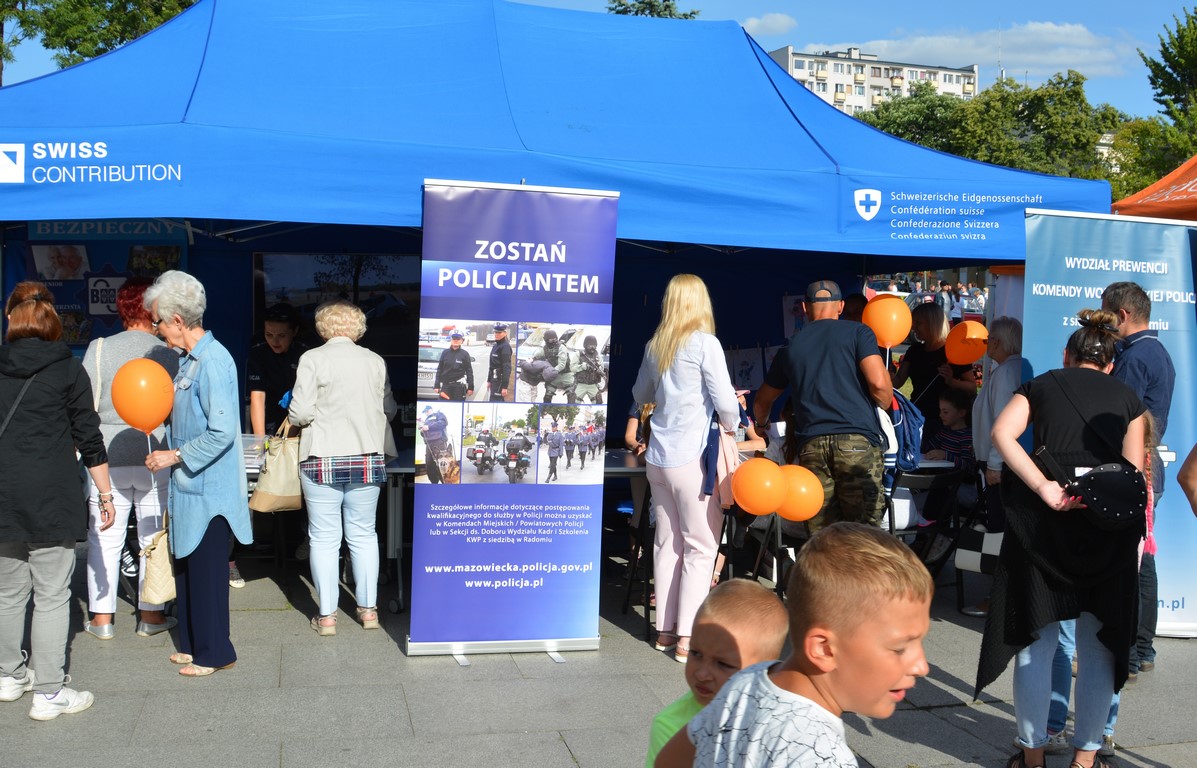 Także mazowieccy policjanci wzięli w nim czynny udział. Korzystając z okazji przekazywali odwiedzającym piknik wiedzę z zakresu prewencji kryminalnej oraz bezpieczeństwa w ruchu drogowym.