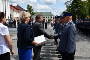 W uroczystości udział wzięli między innymi: Sekretarz Stanu w Ministerstwie Spraw Wewnętrznych i Administracji Jarosław Zieliński oraz Komendant Wojewódzki Policji w Białymstoku nadinspektor Daniel Kołnierowicz wraz z Zastępcami młodszym inspektorem Jackiem Kumpiałowskim i młodszym inspektorem Jackiem Tarnowskim. W obchodach uczestniczyli również przedstawiciele instytucji samorządowych, służb mundurowych, przedstawiciele duchowieństwa, pracownicy Policji, rodziny świętujących funkcjonariuszy oraz mieszkańcy miasta.
