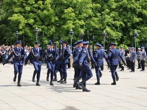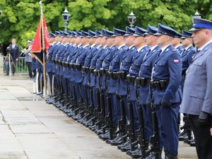 Następnie głos zabrał Sekretarz Stanu w MSWiA Jarosław Zieliński: - chciałbym bardzo serdecznie podziękować wszystkim polskim policjantom za codzienną służbę, za profesjonalizm, ofiarność i patriotyzm. Dzięki Waszym postawom i cechom Polska jest dziś bezpieczna a obywatele mogą normalnie żyć i czuć się bezpiecznie. Szczególnie dziękuję policjantom i pracownikom garnizonu stołecznego, dzięki którym mamy tak wysokie wskaźniki.