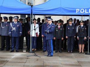 Gratulacje odznaczonym i awansowanym złożył również Zastępca Komendanta Głównego Policji nadinsp. Kamil Bracha. Nawiązał do wyjątkowego jubileuszu oraz rodzącej się 100 lat temu potrzeby utworzenia formacji, której zadaniem było zapewnienia porządku i bezpieczeństwa mieszkańcom. Ten cele nadal przyświecają współczesnym mundurowym.