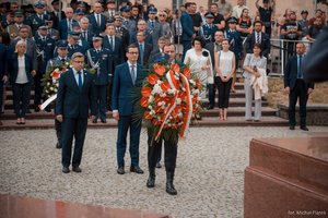 Po mszy świętej wszyscy zaproszeni goście, z Kompanią Honorową i pocztami sztandarowymi na czele, przeszli przy akompaniamencie Orkiestry KWP w Katowicach na Plac Bolesława Chrobrego. Dowódca uroczystości złożył tam meldunek Prezesowi Rady Ministrów Mateuszowi Morawieckiemu, który przeprowadził przegląd pododdziałów.