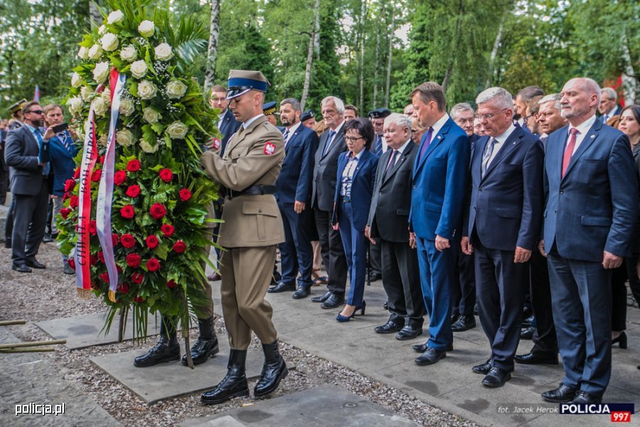 O Godzinie W przy pomniku Gloria Victis na warszawskich Powązkach odbyła się uroczystość oddająca hołd bohaterom sprzed 75. lat. Wzięli w niej udział: Prezydent RP Andrzej Duda, Prezes Rady Ministrów Mateusz Morawiecki, Minister Spraw Wewnętrznych i Administracji Elżbieta Witek i Komendant Główny Policji gen. insp. Jarosław Szymczyk. Obecni byli arcybiskup metropolita warszawski kardynał Kazimierz Nycz i ordynariusz polowy Wojska Polskiego, krajowy duszpasterz Policji bp Józef Guzdek, który poprowadził modlitwę.