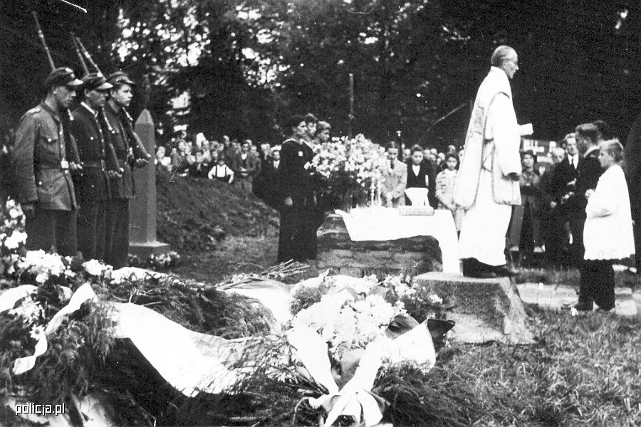 Na zdjęciach poniżej oprócz zdjęcia ks. Jana Zieji są też młodzi milicjanci uczestniczący w polowej mszy świętej oraz delecja Centrum Wyszkolenia, składająca wielki wieniec z napisem „Bohaterom Powstania Warszawskiego - C.W.M.O. Słupsk” w czasie uroczystości odsłonięcia i poświęcenia powstańczego pomnika.