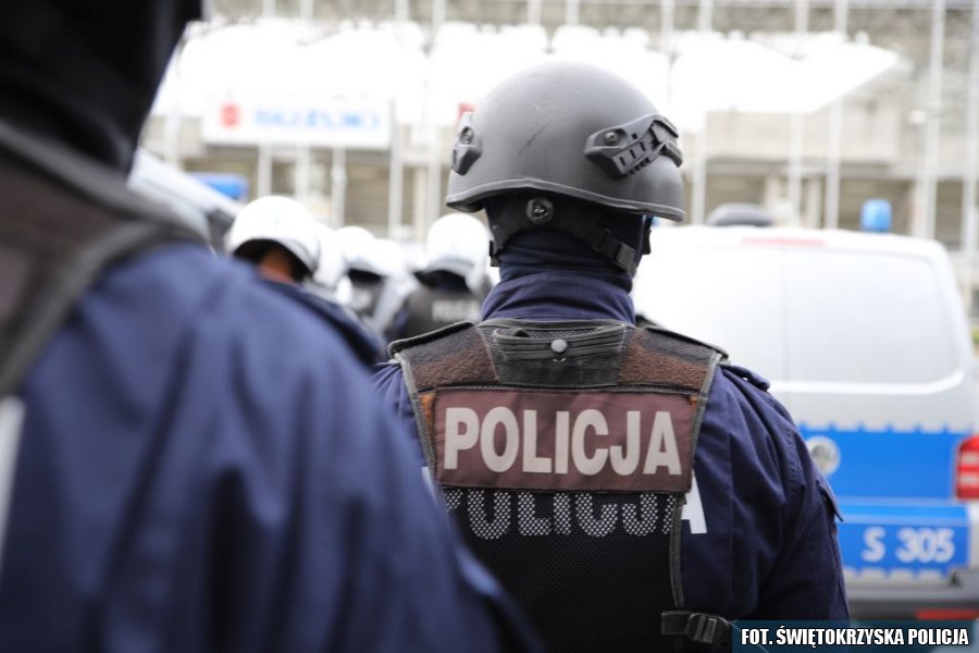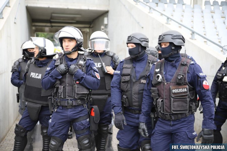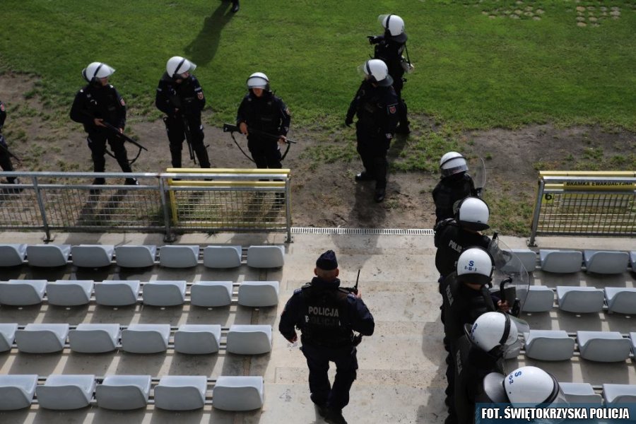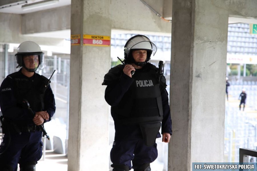 Ćwiczenie czyni mistrza – działania policjantów na kieleckim stadionie -