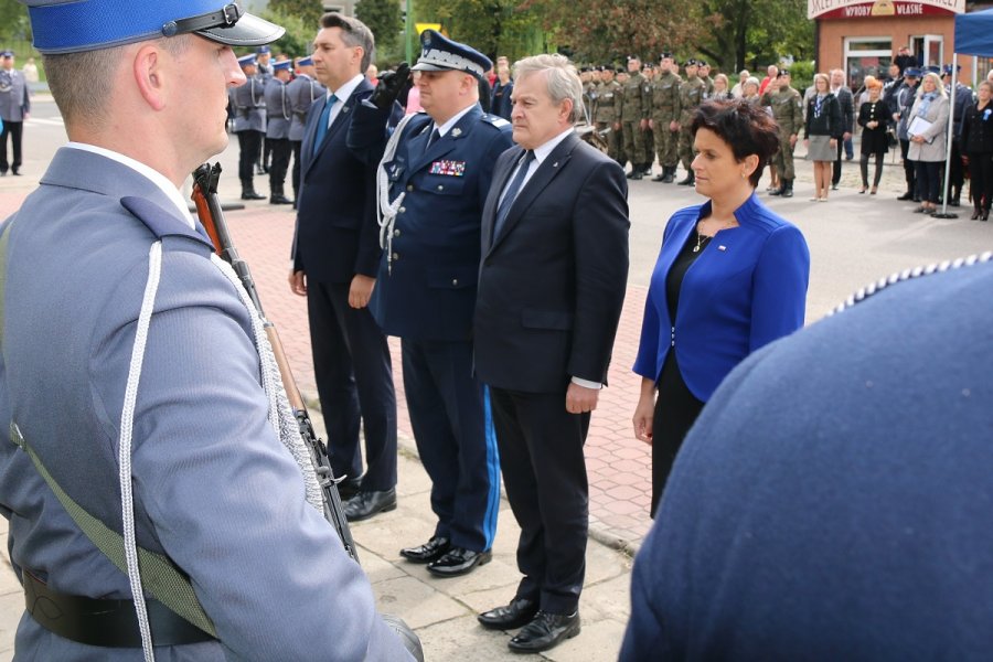 Kiedy zaproszeni goście zajęli swoje miejsca, dowódca uroczystości zameldował o jej rozpoczęciu nadinsp. Andrzejowi Łapińskiemu – Komendantowi Wojewódzkiemu Policji w Łodzi. Po odegraniu Hymnu Państwowego i wciągnięciu na maszt Flagi Narodowej nadinsp. Andrzej Łapiński przywitał wszystkich obecnych. Po krótkich przemówieniach nastąpiło uroczyste odsłonięcie pamiątkowej tablicy. Tablicę odsłonili Wicepremier Rzeczypospolitej Polskiej Piotr Gliński, Komendant Wojewódzki Policji w Łodzi nadinsp. Andrzej Łapiński, Starosta Powiatu Brzezińskiego Renata Kobiera oraz Prezes Stowarzyszenia Rodzina Policyjna 1939 roku w Łodzi Jarosław Olbrychowski. Kapelan Wojewódzkiego Ośrodka Duszpasterskiego Policji w Łodzi Ksiądz ppor. Jacek Syjud poświęcił tablicę. Następnie odczytano apel pamięci i padła salwa honorowa. Po chwili delegacje złożyły wieńce i wiązanki pod tablicą pamiątkową. Na zakończenie odbyła się defilada kompanii honorowej Policji. Po zakończeniu uroczystości Wicepremier Piotr Gliński porozmawiał chwilę z młodzieżą szkolną i harcerzami, którzy licznie zgromadzili się przed siedzibą brzezińskiej komendy.