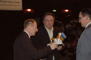 Spotkanie w płockim teatrze miało wyjątkowy charakter. Jedno z trzech przedstawień obejrzał były komendant główny Policji generał Marek Bieńkowski, który został uhonorowany statuetką PaT za osobiste zaangażowanie w budowanie projektu.