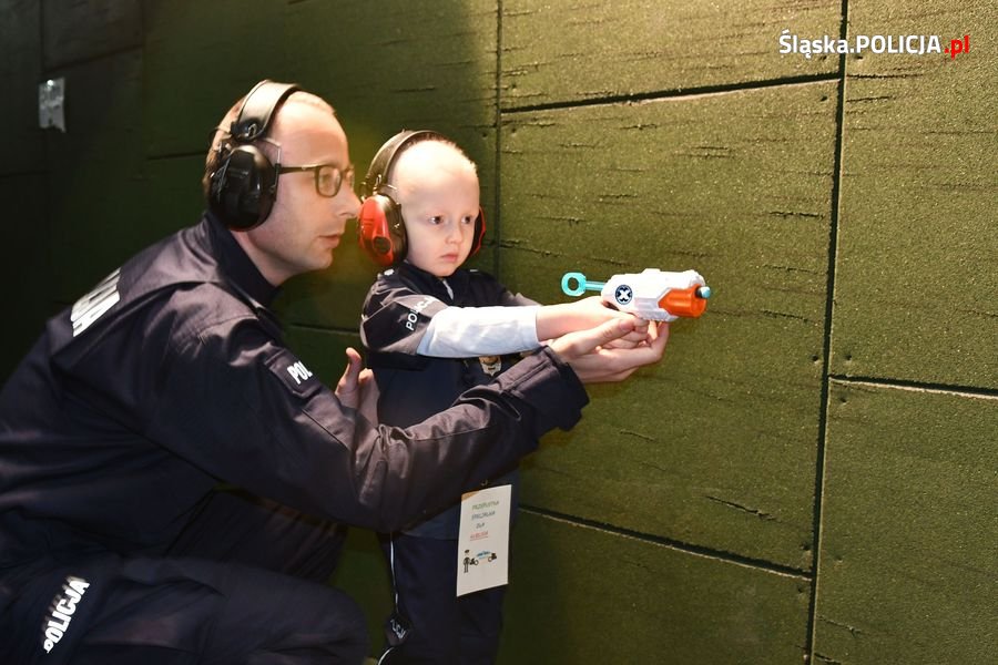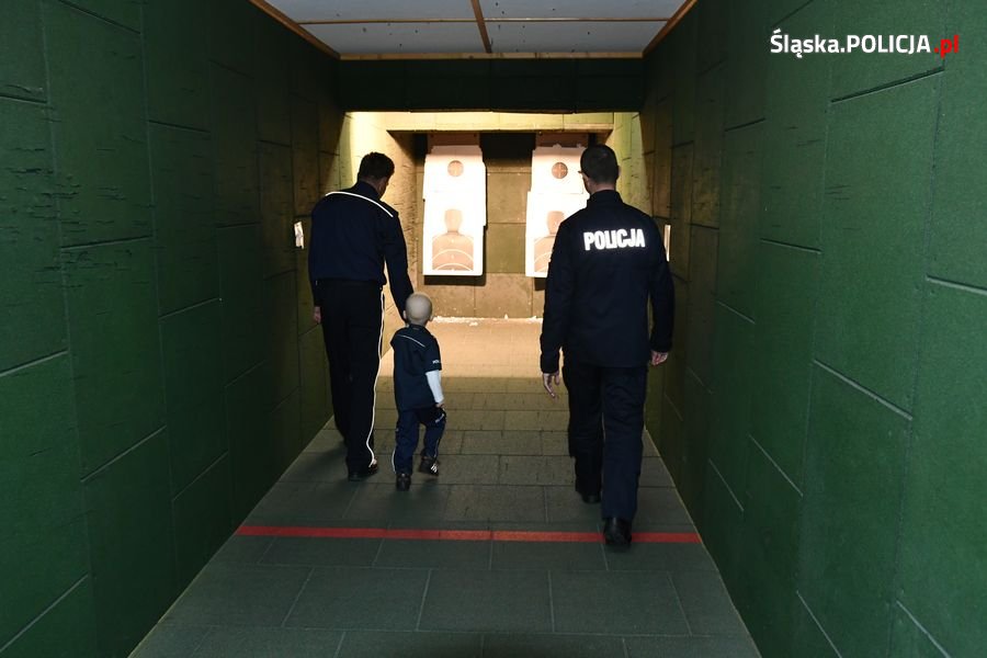 Kolejnym punktem wycieczki, była wizyta u dyżurnego śląskiej Policji, gdzie koordynowane są działania wszystkich mundurowych w województwie. Następnie Kubuś przeszedł kurs strzelecki na strzelnicy, otrzymując na pamiątkę tarczę.
