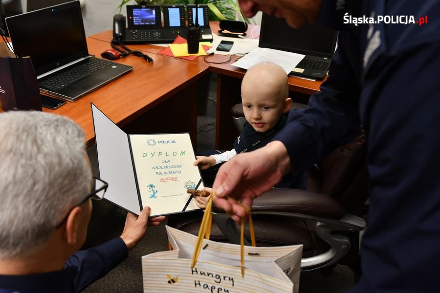 Śląscy policjanci postanowili spełnić jedno z marzeń 4-letniego Kubusia z Sosnowca, który walczy z chorobą nowotworową. Gdy nasi koledzy dowiedzieli się, że Kuba, jak tylko dorośnie, chce zostać policjantem, natychmiast zareagowali. Zorganizowany dla niego „dzień otwarty” w komendzie obfitował w wiele atrakcji, które zapewne na długo pozostaną w pamięci dzielnego 4-latka.