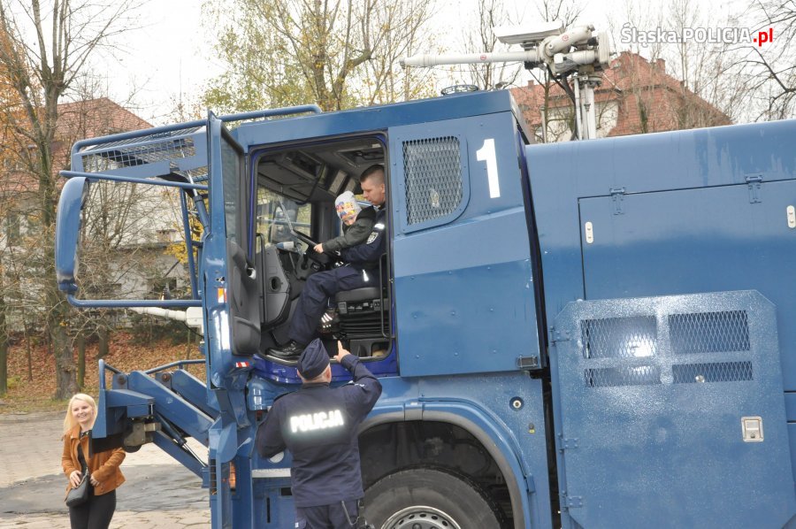 Dalsza część atrakcji czekała go na terenie Oddziału Prewencji Policji w Katowicach. Tam zasiadł w radiowozie i przejechał się nim na sygnałach. Mundurowi przewieźli go także armatką wodną, a policjanci z kompanii reprezentacyjnej pokazali musztrę paradną oraz oddali salwę honorową.