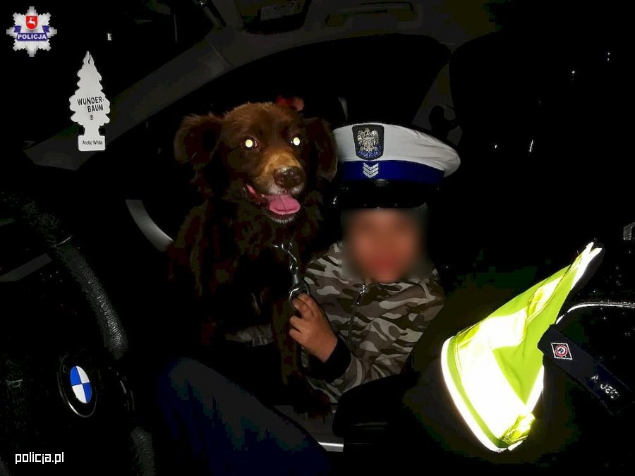 Chłopczyk powiedział policjantom jak się nazywa. Był to poszukiwany 8-latek. Chłopiec razem ze swoim pieskiem usiadł do radiowozu i mówił, że nic mu się nie stało. 8-latek opowiadał, że razem z kolegą i swym pieskiem bawili się na dworze, a potem gdy zrobiło się ciemno nie wiedział jak trafić do domu. Oczekując w radiowozie na rodziców 8-latek przymierzał policyjną czapkę, i oglądał wyposażenie radiowozu. Po kilku minutach szczęśliwi rodzice „odebrali swoją zgubę” i pieska. Dziękowali przy tym policjantom i wszystkim zaangażowanym w poszukiwania ich synka.