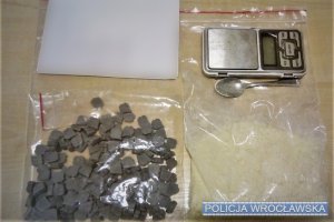 W trakcie dalszych czynności uwagę policjantów zwróciła charakterystyczna waga, która leżała na stoliku. Takie bowiem urządzenie bardzo często służy do odmierzania porcji narkotyków. Po chwili policjanci ujawnili w mieszkaniu również same narkotyki. W jednym z foliowych worków znajdowała się duża ilość białego proszku, a w drugim szare pigułki.