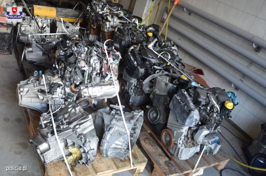 Zabezpieczono łącznie ponad 30 podzespołów takich jak silniki, skrzynie biegów i elementy karoserii.