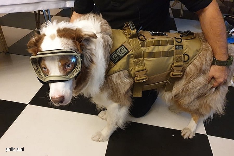 Psy, które pełnią służbę wraz z funkcjonariuszem Policji, powinny być wyposażone w sprzęt ochronny, związany ze specyfiką służby, aby minimalizować ryzyko powstania urazów, które mogą być śmiertelne. Dla psów służbowych dedykowane są specjalne kamizelki ochronne, gogle, ochronniki uszu oraz specjalne buty.