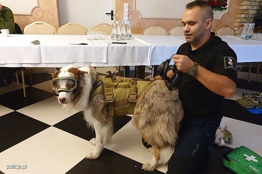 W pierwszym dniu szkolenia zorganizowane były warsztaty poświęcone ratownictwu weterynaryjnemu. Specjalistyczną wiedzę w tym zakresie przedstawił asp.szt. Tomasz Stepień z Komendy Miejskiej Policji we Wrocławiu wraz ze swoim psem Bono - owczarkiem australijskim, który ma 10 lat i dzielnie pełni rolę pozoranta.