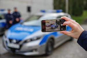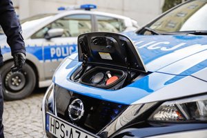 Punktualnie o godzinie 11.00 na parkingu przy Komendzie Wojewódzkiej Policji w Kielcach rozpoczęła się uroczystość przekazania czterech elektrycznych pojazdów marki Nissan Leaf II. Pojazdy te będą wykorzystywane w służbie patrolowej przez policjantów pionu prewencji z Komendy Miejskiej Policji w Kielcach, a także Komend Powiatowych w Ostrowcu Świętokrzyskim oraz Starachowicach. Warto podkreślić, że te nowoczesne radiowozy posiadają wyłącznie napęd elektryczny, a 150 konny silnik pozwala na przyspieszenie od 0 do 100 km w 7,5 sekundy i rozwinięcie maksymalnej prędkości do ponad 140 km/h. Auto przy pełnym naładowaniu może przejechać blisko 300 kilometrów.