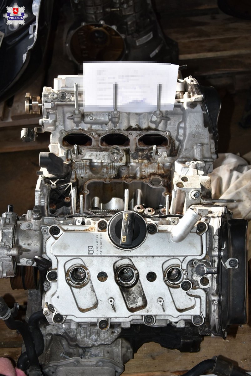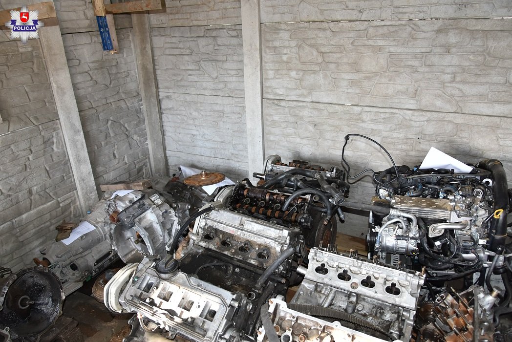 Na terenie posesji funkcjonariusze ujawnili również szereg części samochodowych między innymi silniki, skrzynie biegów oraz elementy nadwozia i karoserii do aut marki BMW, Mercedes, Ford, Range Rover czy Audi. Żmudna praca śledczych pozwoliła na zabezpieczenie części. Wstępne ich sprawdzenie potwierdziło, że zostały wymontowane z samochodów skradzionych z terenu Wielkiej Brytanii. Wartość zabezpieczonego mienia oszacowana została wstępnie na kwotę 180 tysięcy złotych.