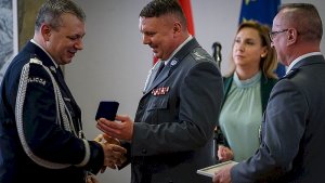Na koniec głos zabrał nadinsp. Jarosław Rzymkowski, który nie kryjąc wzruszenia podkreślił, że służba w Policji oraz w ostatnich latach dowodzenie pomorskim garnizonem były dla niego ogromnym zaszczytem i ważnym doświadczeniem. Pan Generał podziękował wszystkim współpracownikom za wsparcie i wkład w realizację zadań związanych z zapewnieniem bezpieczeństwa na terenie całego województwa. W podobnym tonie zwrócił się także do przedstawicieli administracji rządowej i samorządowej w regionie oraz do przedstawicieli zaproszonych instytucji i służb. Za pośrednictwem I Z-cy Komendanta Głównego Policji podziękował Komendantowi Głównemu Policji za możliwość owocnej współpracy, a także swoim zastępcom i kadrze kierowniczej. Swoją wdzięczność skierował również w stronę rodziny, dziękując za wyrozumiałość i wsparcie w trakcie wszystkich lat swojej służby.