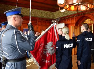 Kolejni nowi funkcjonariusze zasilili szeregi KWP w Szczecinie. Dzisiaj złożyli przysięgę służenia Ojczyźnie i społeczeństwu. Szef zachodniopomorskiej Policji nadinsp. Tomasz Trawiński gratulował nowym policjantom i życzył sukcesów w rozpoczętej służbie.