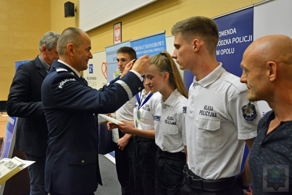 Na zakończenie, medale i nagrody laureatom wręczył Komendant Wojewódzki Policji w Opolu nadinsp. Jarosław Kaleta, Rektor Politechniki Opolskiej dr hab. inż. Marcin Lorenc oraz starszy wizytator Pani Beata Śmietanka reprezentująca Opolskiego Kuratora Oświaty: