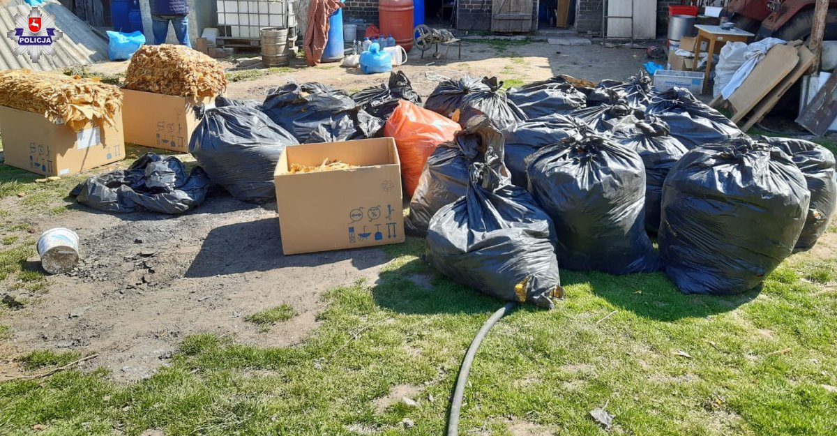 Pół tony nielegalnego suszu tytoniowego, wytworzoną krajankę, 400 litrów zacieru do produkcji alkoholu, kilkanaście litrów wyprodukowanego alkohol, aparaturę do produkcji alkoholu oraz maszynkę do krojenia tytoniu ujawnili i zabezpieczyli lubelscy policjanci na jednej z posesji w gminie Wojciechów. Łączna wartość uszczuplenia należności na rzecz Skarbu Państwa wynosi prawie 270 tysięcy złotych. Zatrzymany w sprawie 58-latek usłyszał już zarzuty.