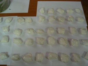 Jeszcze tego samego dnia kryminalni udali się do mieszkania Pawła K. Policjanci wiedzieli, że w środku przebywała jego dziewczyna. Anna R. (27 lat) nie reagowała jednak na pukanie do drzwi. Kryminalni podejrzewając, że w mieszkaniu może znajdować się większa ilość narkotyków, zdecydowali się na siłowe wejście. Ich przypuszczenia potwierdziły się w stu procentach. W różnych częściach mieszkania policjanci znaleźli marihuanę, haszysz, heroinę i biały proszek, który został zabezpieczony do badań. Oprócz prawie trzystu działek narkotyków zabezpieczono także elektroniczną wagę do ich porcjowania oraz około 700 torebek foliowych tzw. dilerek.