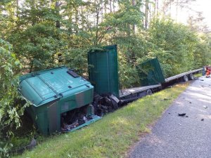 W wyniku wypadku droga krajowa jest zablokowana, a ruch dla samochodów odbywa się po wyznaczonych przez policjantów objazdach.
