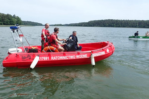 Już pierwsza wspólna służba na jeziorze Orzysz okazała się niezwykle potrzebna. Patrol składający się z policjanta i dwóch ratowników wodnych, w odległości około 300 m od brzegu zauważył przewróconą łódź. Wokół niej było kilka osób w wodzie wołających o pomoc. Funkcjonariusze widząc to natychmiast podpłynęli. Okazało się, że do jeziora wpadło czterech mężczyzn, a ich łódź wędkarska bardzo szybko nabierała wody. Sytuacja była tym bardziej niebezpieczna, że żadna z osób nie miała na sobie kamizelki asekuracyjnej.