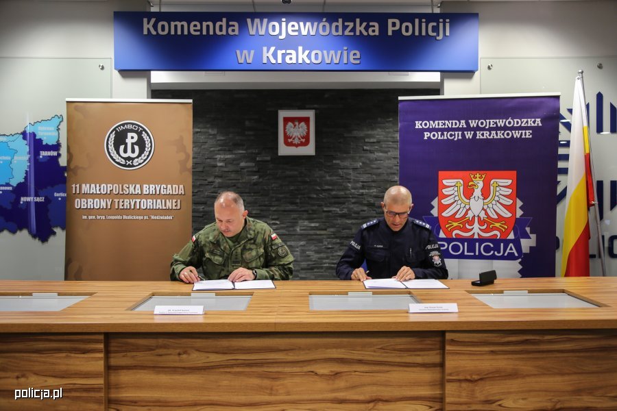 Komendant Wojewódzki Policji w Krakowie oraz Dowódca 11 Małopolskiej Brygady Obrony Terytorialnej podpisali porozumienie o współpracy. Dotyczy ono współpracy w sytuacji podejmowania wspólnych działań m.in. w przypadku wystąpienia zdarzeń kryzysowych, ratowania życia ludzkiego i poszukiwania osób zaginionych oraz szkolenia w tym zakresie.