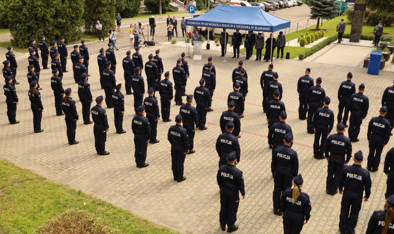 Dzisiaj na placu przed budynkiem Komendy Wojewódzkiej Policji zs. w Radomiu odbył się uroczysty apel, podczas którego ślubowało 78 nowo przyjętych funkcjonariuszy Policji. W tej grupie jest 14 kobiet.