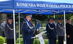 Na zakończenie uroczystości ślubowania Komendant Wojewódzki Policji insp. Michał Ledzion wręczył nowym 14 funkcjonariuszkom róże z okazji obchodzonej w tym roku 95. Rocznicy Powołania Policji Kobiecej.