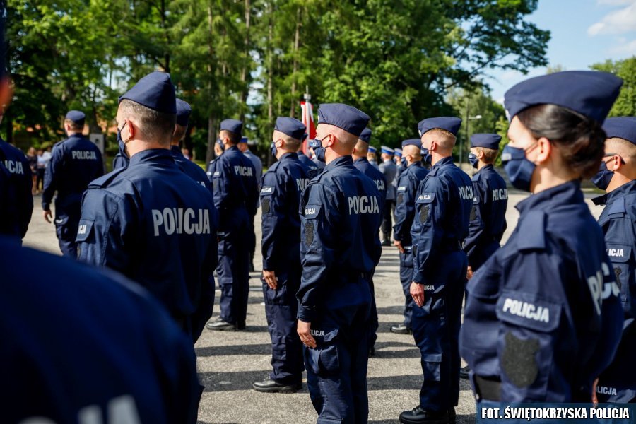 Dziś 36 nowych policjantów zasiliło szeregi garnizonu świętokrzyskiego. Nowi funkcjonariusze wypowiedzieli słowa roty ślubowania, które przyjął Komendant Wojewódzki Policji w Kielcach nadinsp. Paweł Dzierżak. Teraz nowo przyjętych mundurowych czeka sześciomiesięczny kurs, po którym rozpoczną służbę w poszczególnych jednostkach w województwie świętokrzyskim.