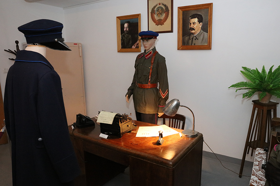 Prezentowana wystawa składa się z dwóch części. Pierwszej stanowiącej rekonstrukcję kalińskiego (obecnie twerskiego) pokoju przesłuchań w siedzibie NKWD oraz ostaszkowskiej celi, w której przetrzymywani byli funkcjonariusze PP. Drugą cześć wystawy stanowi ekspozycja pamiątek po zamordowanych policjantach, wydobytych z dołów śmierci.