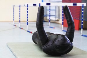 Następnym problemem są piłki lekarskie o wadze trzech kilogramów. Chodzi tu o technikę. Bardzo ważnym jest, aby rzucić oburącz zza głowy, nie jedną ręką i nie sprzed klatki piersiowej, sprzed głowy, tylko oburącz zza głowy. To też jest bardzo częstym błędem.