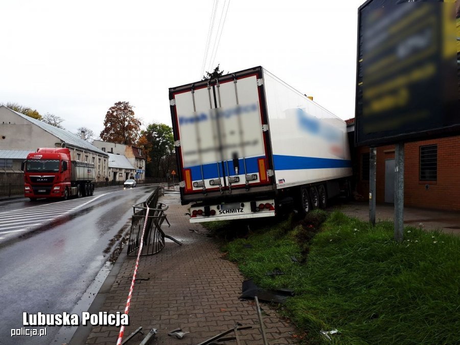 W poniedziałek, 2 listopada br., tuż przed południem policjanci ruchu drogowego otrzymali informację o tym, że w ścianę budynku jednego ze wschowskich marketów mieszczących się przy drodze krajowej nr 12 wjechał tir. Warunki atmosferyczne były niekorzystne i padał deszcz. Przybyli na miejsce policjanci ruchu drogowego nie mieli wątpliwości, że przyczyną zdarzenia drogowego były utrata panowania nad pojazdem i nadmierna prędkość. Kierujący rozpędzoną ciężarówką uszkodził barierki energochłonne, pokonał skarpę i z całą siłą uderzył w budynek sklepu. Konstrukcja obiektu uległa poważnemu uszkodzeniu. Podjęto szybko o decyzję o ewakuacji wszystkich osób przebywających w markecie i jego zamknięciu. Na szczęście nikomu nic się nie stało. Kierowca 33-letni mieszkaniec powiatu konińskiego był trzeźwy.