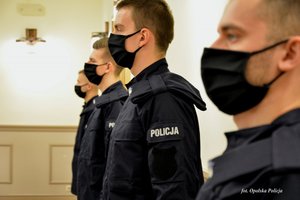 "Ja, obywatel Rzeczpospolitej Polskiej, świadom podejmowanych obowiązków policjanta..." - to początek roty ślubowania, którą właśnie w naszym garnizonie złożyło 32 nowych funkcjonariuszy. Z uwagi na panującą epidemię, uroczystość ma skromniejszy charakter i odbywa się także w tych jednostkach, do których nowo przyjęci policjanci zostali przydzieleni. Teraz adepci odbędą szkolenie podstawowe, po czym trafią do swoich jednostek macierzystych. Przypominamy, że dobór wciąż trwa, a dokumenty można składać we wszystkich komendach, 7 dni w tygodniu o każdej porze.