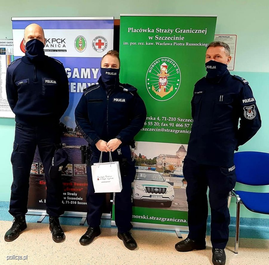 W dniu 23 listopada 2020 r. członkowie Klubu Honorowych Dawców Krwi PCK przy Oddziale Prewencji Policji w Szczecinie, na zaproszenie Klubu HDK PCK "Granica" przy Placówce Straży Granicznej w Szczecinie, wzięli udział w otwartej akcji honorowego krwiodawstwa pn. "Nasza Krew - Nasza Ojczyzna".