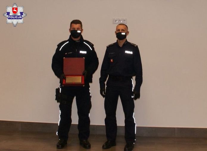 Wyrazy najwyższego uznania za szczególną odwagę i ofiarność od Ministra Spraw Wewnętrznych i Administracji otrzymał starszy aspirant Marek Pawlak. Policjant z zamojskiej komendy kilka miesięcy temu narażając własne życie pomógł człowiekowi, który przebywał w palącym się mieszkaniu. Podziękowania i pamiątkę od Pana Ministra przekazał Komendant zamojskiej Policji.