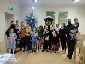 Spotkanie z policyjnym misiem sprawiło dzieciom dużo radości. Każdy z uczestników otrzymał prezenty. Dzięki tej inicjatywie policjantki wprowadziły do placówki dużo pozytywnej energii, ciepła i uśmiechu, który z pewnością będzie najmłodszym towarzyszył przez najbliższy okres Świąt Bożego Narodzenia.