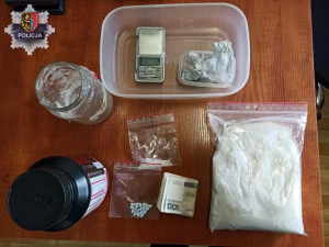 W Polkowicach policjanci zapukali do drzwi jednego z mieszkań na terenie miasta, gdzie według zdobytych informacji mogła przebywać osoba posiadająca narkotyki. Funkcjonariusze znaleźli w miejscu zamieszkania 25-latka słoik i zawiniątka z metamfetaminą oraz 20 tabletek z zawartością pochodnych amfetaminy. W lokalu zabezpieczono również wagę elektroniczną, torebki foliowe z zapięciem strunowym oraz pieniądze na poczet przyszłych kar. Okazało się, że z zabezpieczonych narkotyków można było uzyskać blisko 8 tys. porcji handlowych, które zamiast na ulice trafiły ostatecznie do policyjnego depozytu.