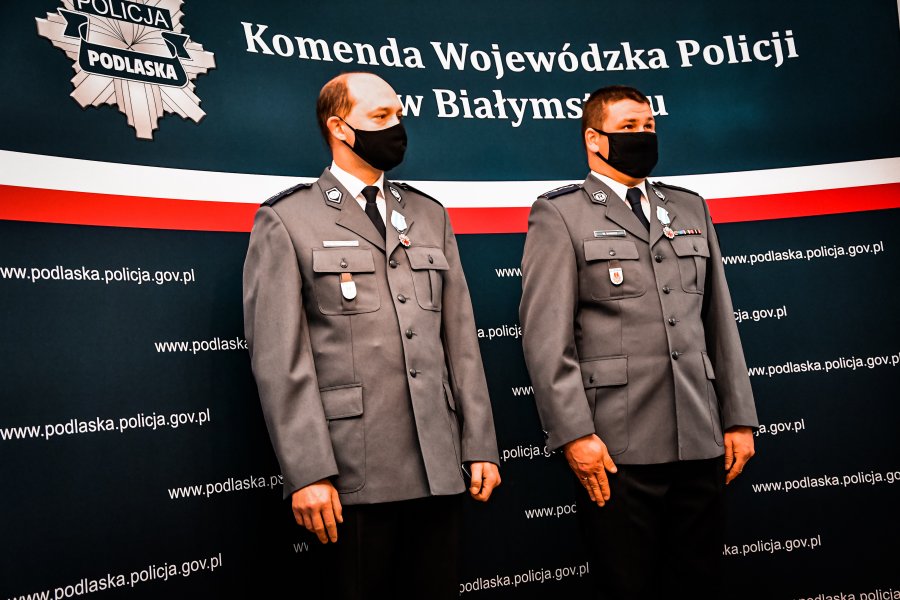 Dzisiaj także dwóch policjantów z grupy Speed zostało wyróżnionych przez Ministra Zdrowia Odznaką „Honorowy Dawca Krwi – Zasłużony dla Zdrowia Narodu”. Od blisko 20 lat młodsi aspiranci Marcin Sawicz i Marek Trzeciak z podlaskiej grupy SPEED są honorowymi dawcami krwi. Marcin, od 2003 roku oddał 53 litry krwi, a Marek zaczął rok wcześniej i ma na swoim koncie 28 litrów tego bezcennego daru. Obaj wielokrotnie udowodnili, że są w stanie bezinteresownie pomagać. Oddawali krew w nagłych wypadkach, ale reagowali także na prośby oddania krwi dla policjantów i członków ich rodzin. Również czas pandemii nie był dla nich przeszkodą i w tym okresie honorowo oddawali krew i osocze.