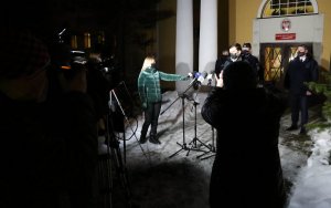 Przed briefingiem, jego uczestnicy wzięli udział w odprawie z funkcjonariuszami Policji, zabezpieczającymi porządek w centrum Zakopanego. Wojewoda w zakopiańskiej komendzie prosił funkcjonariuszy, żeby reagowali na przypadki łamania obostrzeń sanitarnych i dziękował za dotychczasowe działania.