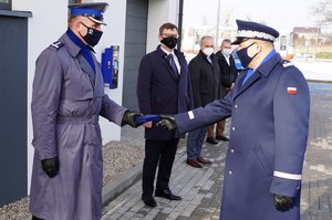 W czwartek (25.02.2021) w nowej siedzibie Posterunku Policji w Wielbarku spotkali się: Artur Chojecki Wojewoda Warmińsko – Mazurski, nadinsp. Tomasz Klimek Komendant Wojewódzki Policji w Olsztynie, Jerzy Krzysztof Szczepanek Wicestarosta Powiatu Szczycieńskiego oraz Grzegorz Zapadka Burmistrz Wielbarka, a także gospodarz nowego obiektu insp. Radosław Drach Komendant Powiatowy Policji w Szczytnie, któremu szef policjantów z Warmii i Mazur przekazał klucze do posterunku, dzięki czemu od początku marca policjanci będą pełnić tam służbę. Policjanci będą mieli do dyspozycji również nowy radiowóz, którego zakup został współfinansowany ze środków Gminy Wielbark oraz budżetu Policji.