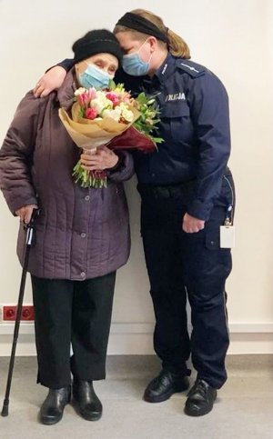 Pani Weronika usłyszała jaką kwotę przekazali jej ludzie dobrego serca i otrzymała kwiaty z rąk policjantki, która ogłosiła zbiórkę