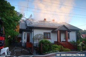 Wczoraj (23.05.2021 r.) kilka minut przed godziną 4.00 nad ranem połanieccy policjanci, patrolując teren miejscowości Ruszcza w pewnym momencie zauważyli, że niedaleko nich pali się dom. W trakcie dojazdu na miejsce za pośrednictwem drogi radiowej mundurowi powiadomili dyżurnego Komendy Powiatowej Policji w Staszowie o pożarze, który następnie powiadomił straż.