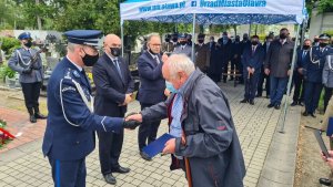 Wczoraj 25 maja 2021 roku na Cmentarzu Komunalnym w Oławie odbyła się uroczystość uhonorowania grobów funkcjonariuszy Policji Państwowej okresu II RP w ramach projektu "Ocalamy", zainicjowanego przez Instytut Pamięci Narodowej oraz Dolnośląski Urząd Wojewódzki. Podczas wydarzenia obecni byli: Wicewojewoda Dolnośląski Jarosław Kresa, Komendant Wojewódzki Policji we Wrocławiu inspektor Dariusz Wesołowski, Pani Alicja Kluz – Przewodnicząca Wrocławskiego Oddziału Ogólnopolskiego Stowarzyszenia Rodzina Policyjna 1939 wraz z Koordynatorem Panem Piotrem Kacprzyńskim, księża Protojerej kanonik Grzegorz Cebulski i kanonik Stanisław Stelmaszek, a także przedstawiciele lokalnych samorządów, wojska, organizacji kombatanckich i sybirackich, oraz rodziny policjantów.