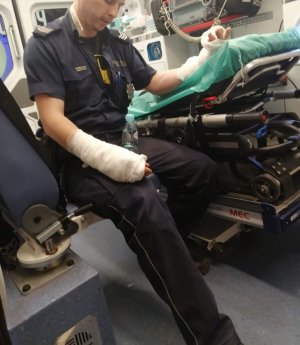 W wyniku podjętej przez policjantów akcji jeden z nich, 30-letni funkcjonariusz służący w Komendzie Powiatowej Policji w Ostrzeszowie, sierż. szt. Piotr Pawłowski, doznał obrażeń ciała w postaci oparzenia obu dłoni, stanowiące 2-3 procent poparzenia pierwszego stopnia, oparzeń karku, uszkodzenia stawu skokowego oraz miał trudności z oddychaniem związane z dużą aspiracją dymu i gorących oparów. W chwili obecnej jego życiu nie zagraża niebezpieczeństwo.