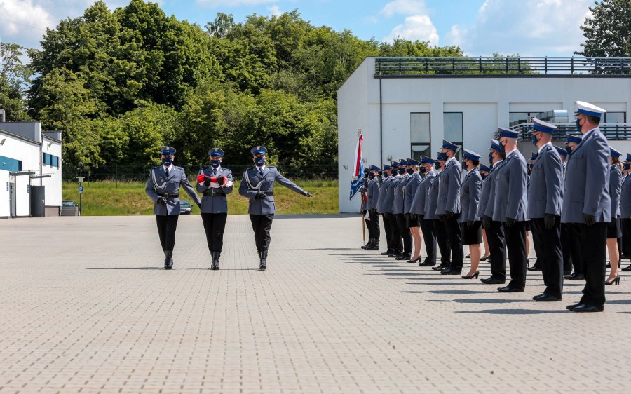 Uroczystość rozpoczęła się od wprowadzenia pocztu sztandarowego KWP w Krakowie i zdania meldunku Komendantowi Wojewódzkiemu Policji w Krakowie gen. Michałowi Ledzionowi przez dowódcę uroczystości mł. insp. Zbigniewa Woszczka.