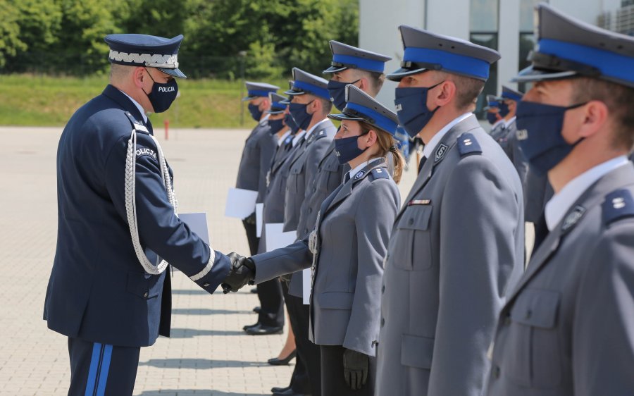 Następnie nadinspektor Michał Ledzion wręczył funkcjonariuszom akty mianowania na pierwszy stopień oficerski. Otrzymało je aktualnie 85 małopolskich policjantów. Po części ceremonialnej, głos zabrał Komendant Wojewódzki Policji, przywitał serdecznie zgromadzonych gości, odznaczone osoby oraz mianowanych funkcjonariuszy.