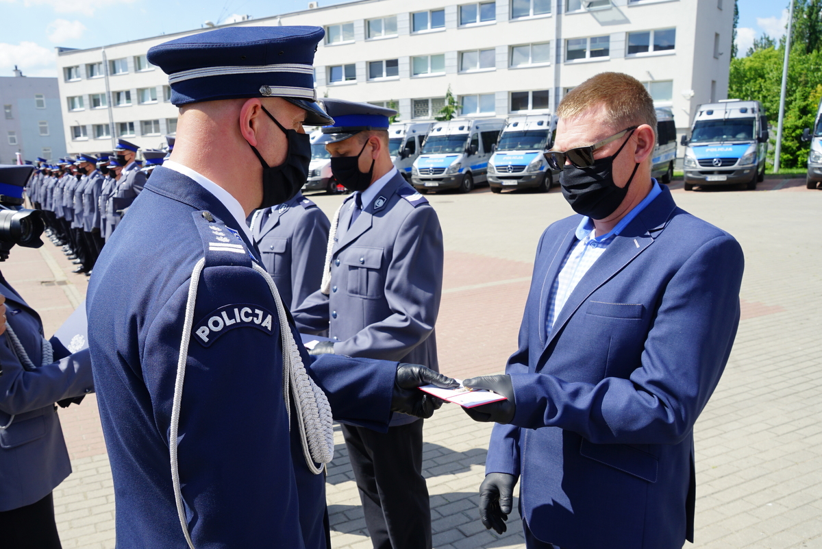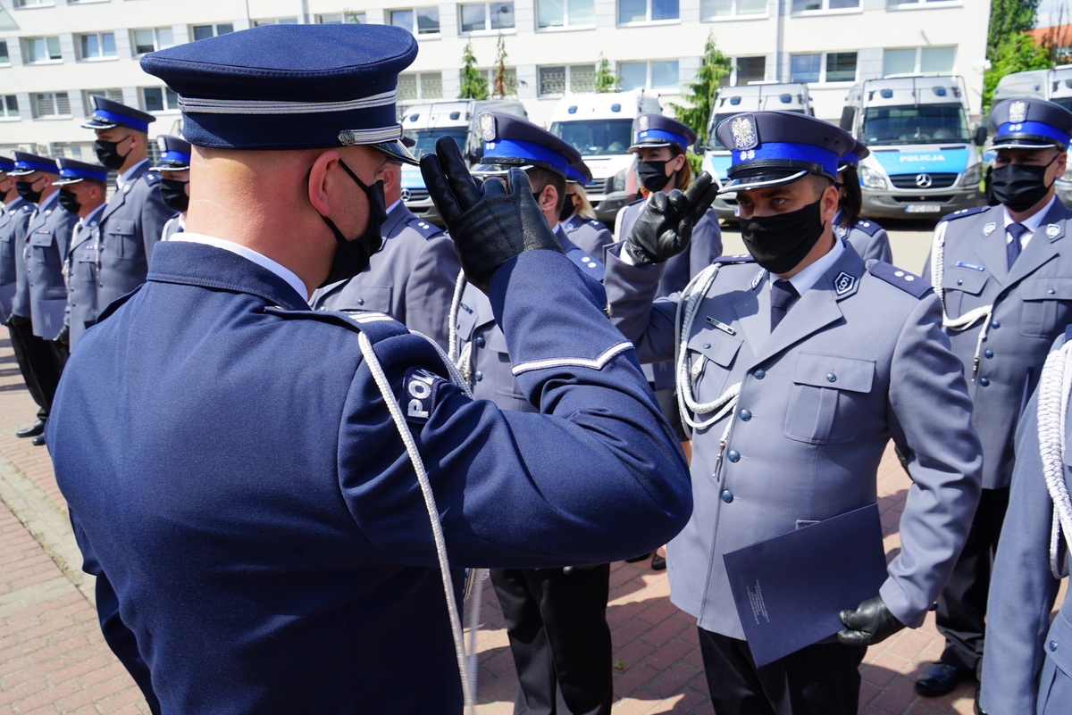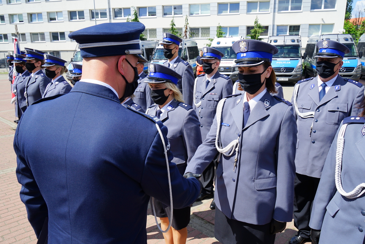 Dzisiaj (10.06.21) na placu Oddziału Prewencji Policji w Bydgoszczy w obecności Kapelana kujawsko-pomorskiej Policji, Dyrektora Wojewódzkiej Stacji Pogotowia Ratunkowego oraz Kierownictwa Policji odbyła się szczególna uroczystość. Komendant Wojewódzki Policji w Bydgoszczy insp. Piotr Leciejewski wręczył 41 funkcjonariuszom akty mianowania na I stopień oficerski. Są to policjanci, którzy ukończyli studia lub specjalistyczny kurs i zdali egzamin w Wyższej Szkole Policji w Szczytnie. Komendant Wojewódzki pogratulował nowo mianowanym podkomisarzom oraz życzył im dużo policyjnego szczęścia, kolejnych awansów i realizacji swoich pasji, zwłaszcza tej głównej, jaką jest służba w Policji. Prosił też, aby dawali odpowiedni przykład przyszłym podwładnym, bo pojawienie się na policyjnym mundurze pagonów oficerskich zobowiązuje.